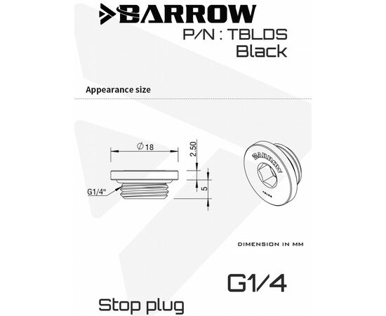 Заглушка Barrow Ultra-thin Inner six angle Stop Plug Fitting - Black